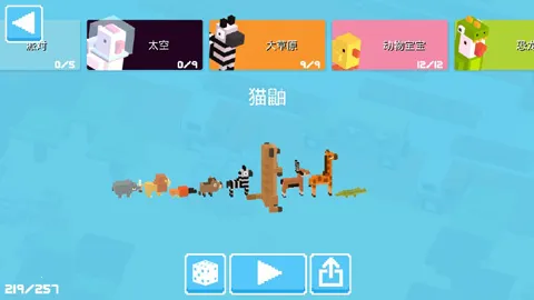 1. 操作简单但闯关不易,玩家操控萌宠在车流中横穿马路,每步计分,穿过街道越多得分越高,在变幻道路上规划路径、收集金币,躲避车辆、火车等,稍有不慎就会游戏结束,极具挑战性。