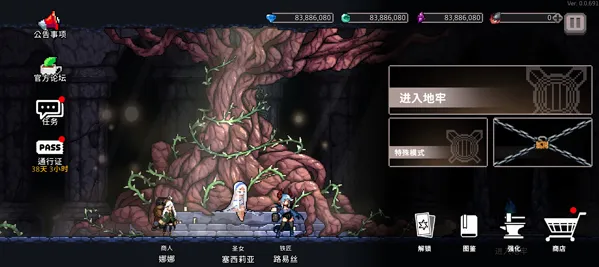 3. 多样玩法:玩家可通过虚拟摇杆控制角色移动,点击屏幕释放技能攻击敌人,还能在随机地牢中探索宝藏、武器和装备,提升角色实力,解锁多种职业和角色,尝试不同战斗风格。