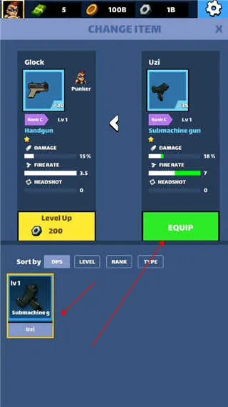 4.击杀敌人后会掉落金币,我们可以点击角色来对其进行升级,还可以点击右方使用道具