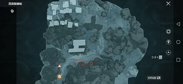 下面这张图中,红圈标注的地方,就是沉没加油站中会刷新花岗岩的地点。(绿圈标注的地方是气泡海鞘所在地)然后根据刷新点间的距离,来回的路程以及物资刷新的时间,我建议各位净化者通过以下路线进行挖矿。