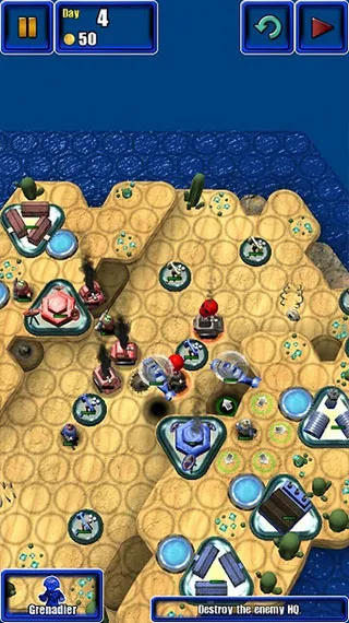 1、**丰富策略玩法**:将战棋策略回合制等元素完美结合,还有建造发展玩法,玩家能体验到极强的策略性。在关卡地图战斗,通过基地生产战斗单位,士兵存在克制关系,可召唤不同士兵组成混合战队应对各种局面。