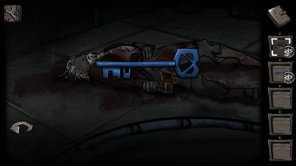 我们会在他的胳膊旁边捡到一把会变色的钥匙这又是一个此时没啥用的道具,接着我们回到地下的右边,那里有一个门,可是我们无论点几次都会触发那个怪物的出现【建议玩家老爷触发一次就行,剧情需要,别多触发了】