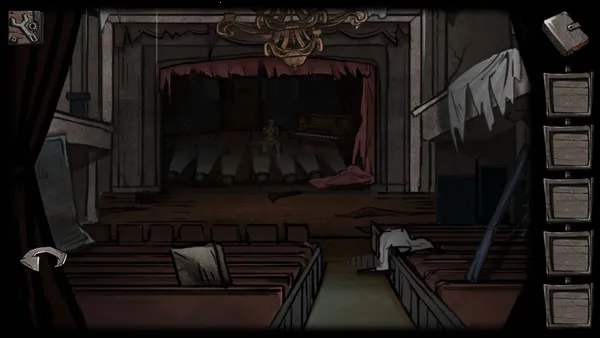 那个人消失后,许多玩家老爷不知道如何继续下去,开始到处找线索,这里,我们还是得回到我们之前去过的剧场来到剧场后,细心的玩家老爷应该会发现原先过道上的被堵住的地方,现在打开了一个向下洞口