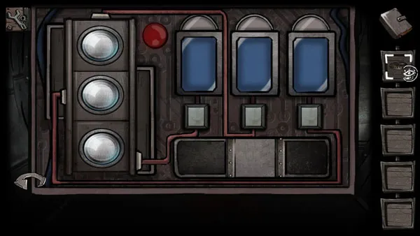 往左之后,我们会见到一个门,门上有一个由楼主不知道的某种密码锁锁着,锁上门有三个灯闪动,灯还连着不同的按钮,很多玩家老爷就说:简单嘛,就是按灯亮顺序点按钮。【其实,灯会连着亮两遍的,别被第一遍误解了,密码可不仅仅按一遍哦】
